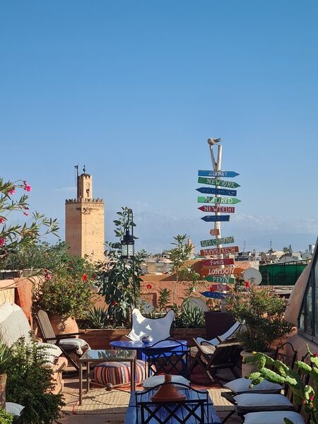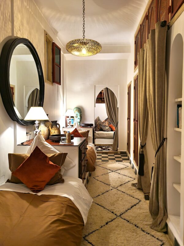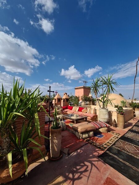 Depuis l’aéroport : l’aéroport de Marrakech-Menara est situé à 8 km de Dar Chibania. Nous pouvons organiser votre arrivée avec un de nos chauffeurs. Comptez environ 15 minutes en voiture pour rejoindre notre riad.